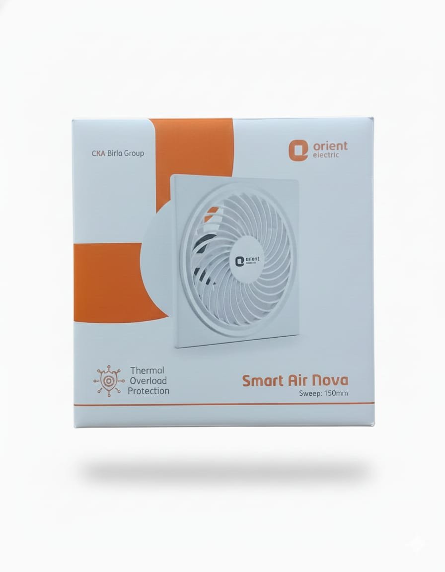 Upgrade your ventilation system with the Orient Smart Air Nova 6-inch Exhaust Fan. Designed with a durable PVC body, this fan is lightweight, rust-proof, and easy to install. Its powerful motor ensures efficient air circulation, making it ideal for kitchens, bathrooms, and other enclosed spaces. The sleek design blends seamlessly with modern interiors, while the low-noise operation ensures a comfortable environment. Enjoy improved air quality and a fresh atmosphere with this reliable and energy-efficient exhaust fan from Orient.