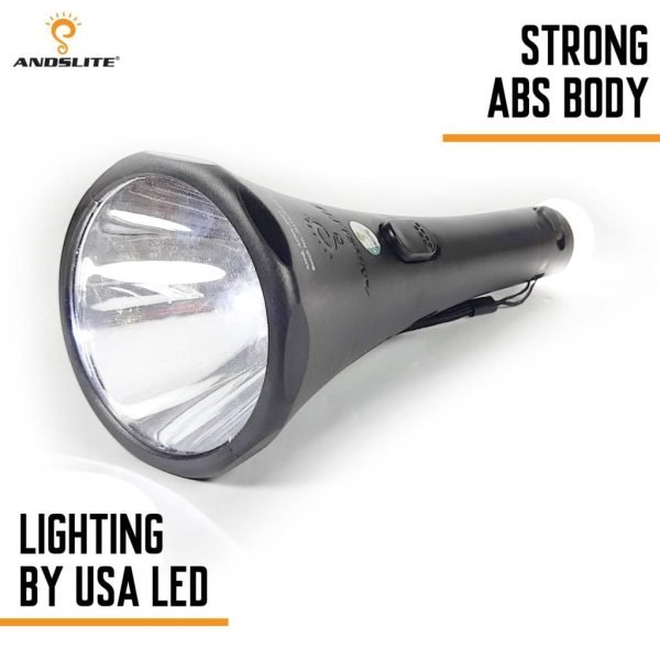The ANDSLITE Jupiter LED Rechargeable Torch Light is a powerful and reliable lighting solution designed for home, outdoor, and emergency use. Built with high-quality materials and advanced LED technology, this torch delivers bright illumination with long backup time, making it ideal for power cuts, security, and travel.